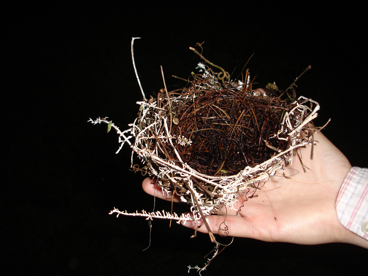 The next to lowest photo is of an unidentified bird’s nest taken at chest level along the trail that incorporates Rhizomorpha corynophora in its construction. We are not sure if the bird used it, or it developed in the nest materials after construction.
