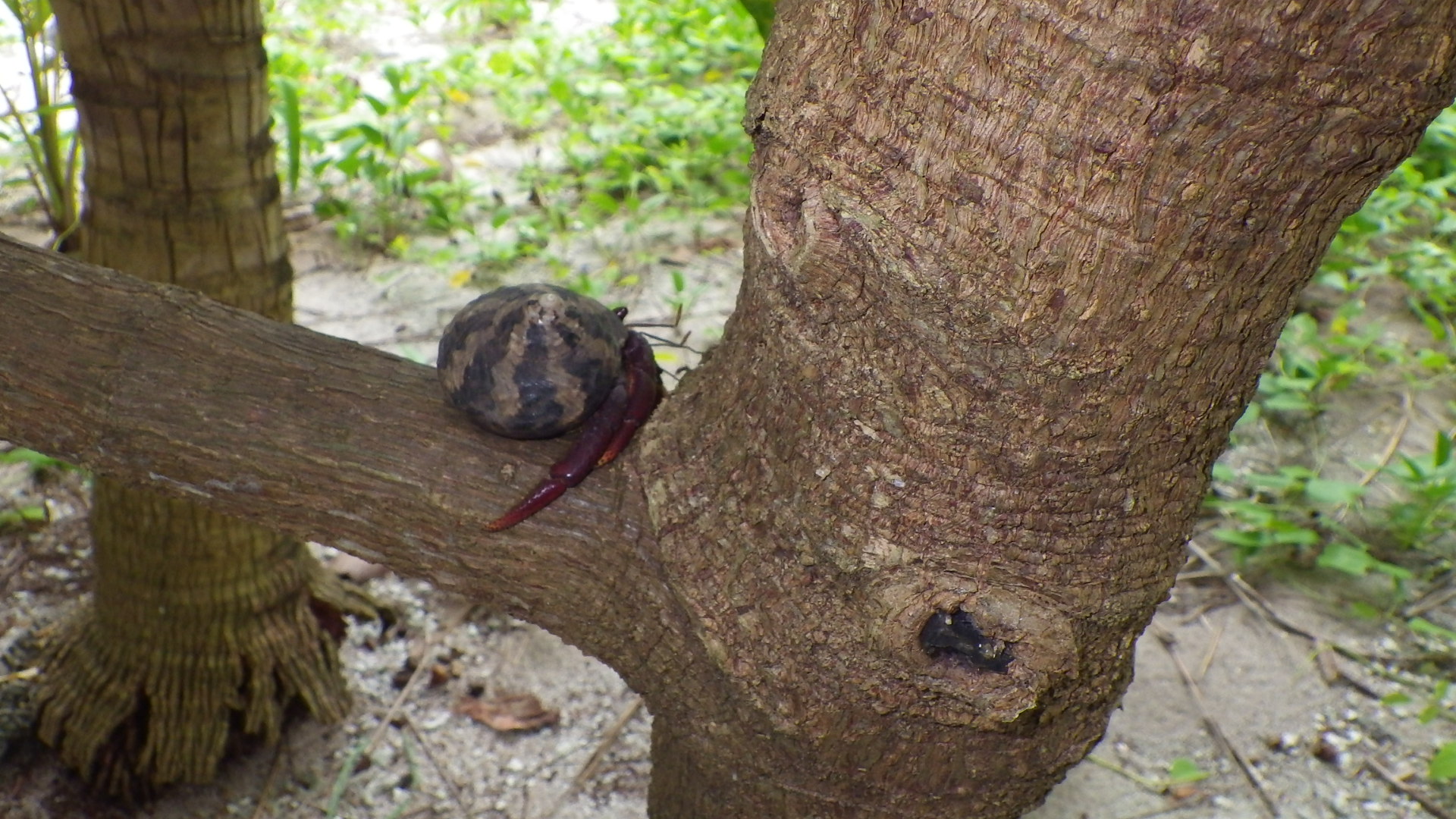 These animals are nocturnal and spend their days inside their shells. At night, they are walking everywhere, and the voraciously attack any food that hits the ground. We think of them as terrestrial, but the top photo shows one sitting on a limb about 4 ft off the ground.