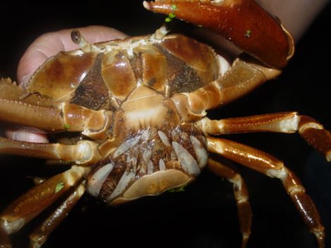 In Trinidad, the local name for an opossum is “manicou.” Since the female keeps her eggs and young on the lower side of her shell until released, the locals have dubbed this crab “manicou.”