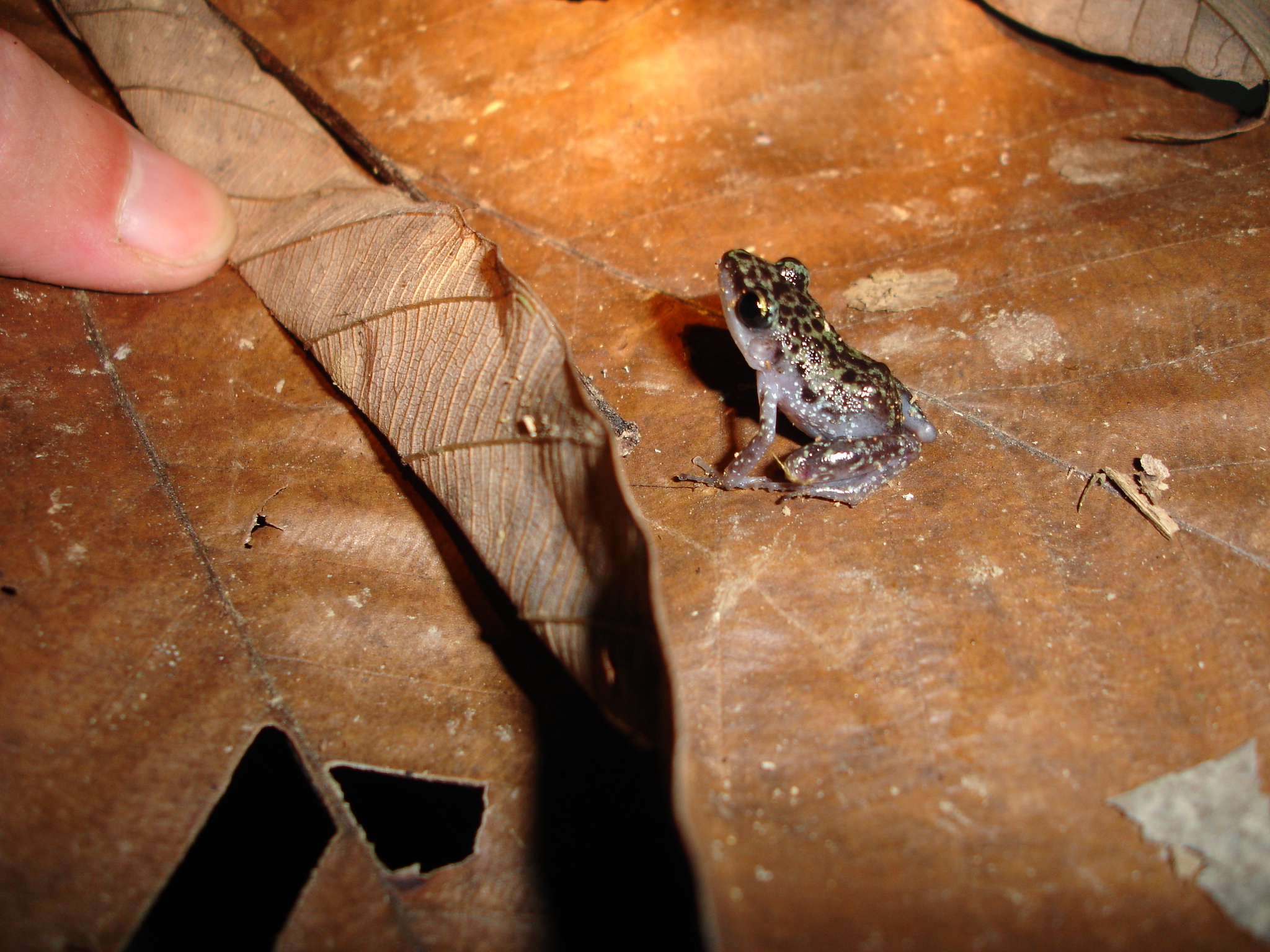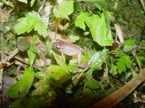 Eleutherodactylus leprus is the “tink” frog of Belize rainforests. Their call is a repetitious “tink, tink, tink.” They normall call sitting on leaves just above the ground, but are difficult to find.