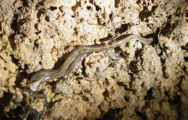 Terrestrial flatworms, planarians of the family Geoplanidae, are rather secretive animals that live in humid zones like leaf-litter, under logs and rocks, and in burrows in moist soil. They prowl on the surface on humid evenings. They are predators on small, usually soft-bodied invertebrates, and they produce copious amounts of slime to protect themselves from desiccation.