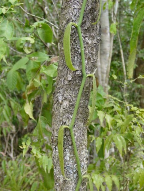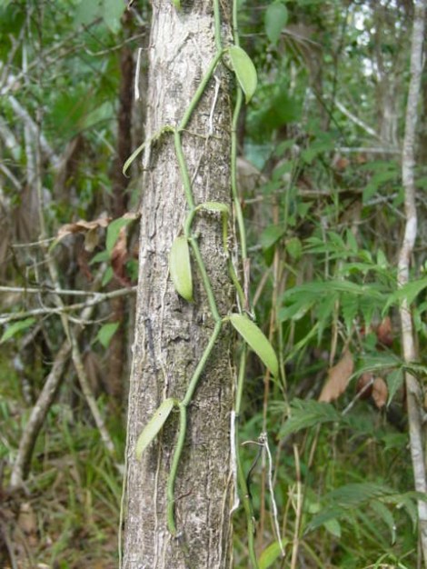 Everyone knows the wonderful taste of vanilla. The beans (not shown here) are produced by this wonderful orchid. They may be farmed, but also occur naturally from Mexico south.