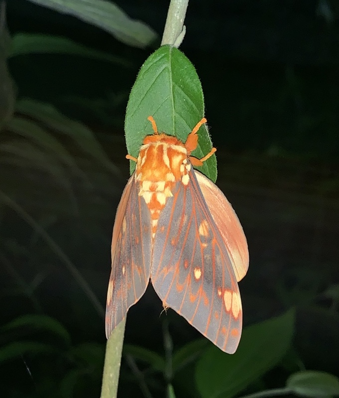 We found quite a number of Imperial Moths the evening of May 25th. Many were fully metamorphosed and fluttering about in vegetation or sitting near lights on the research station. Presumably, they spend their pupation period underground as the species does in North America. Always a large and lovely moth to find!