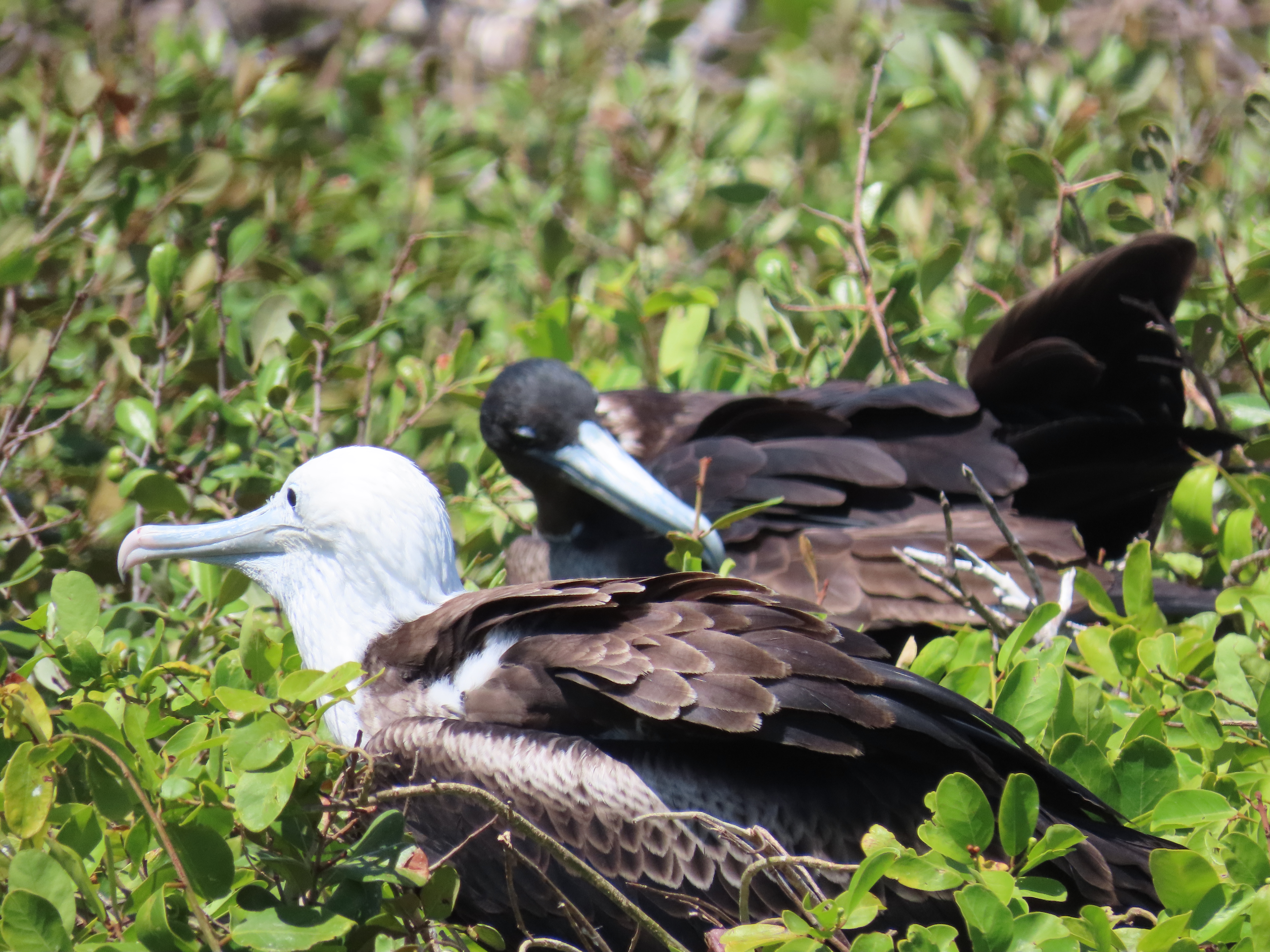 Above photos by Frank Jordan. Red-footed Booby (left) and Magnificent Frigate (right). Half Moon Caye. June 2019.