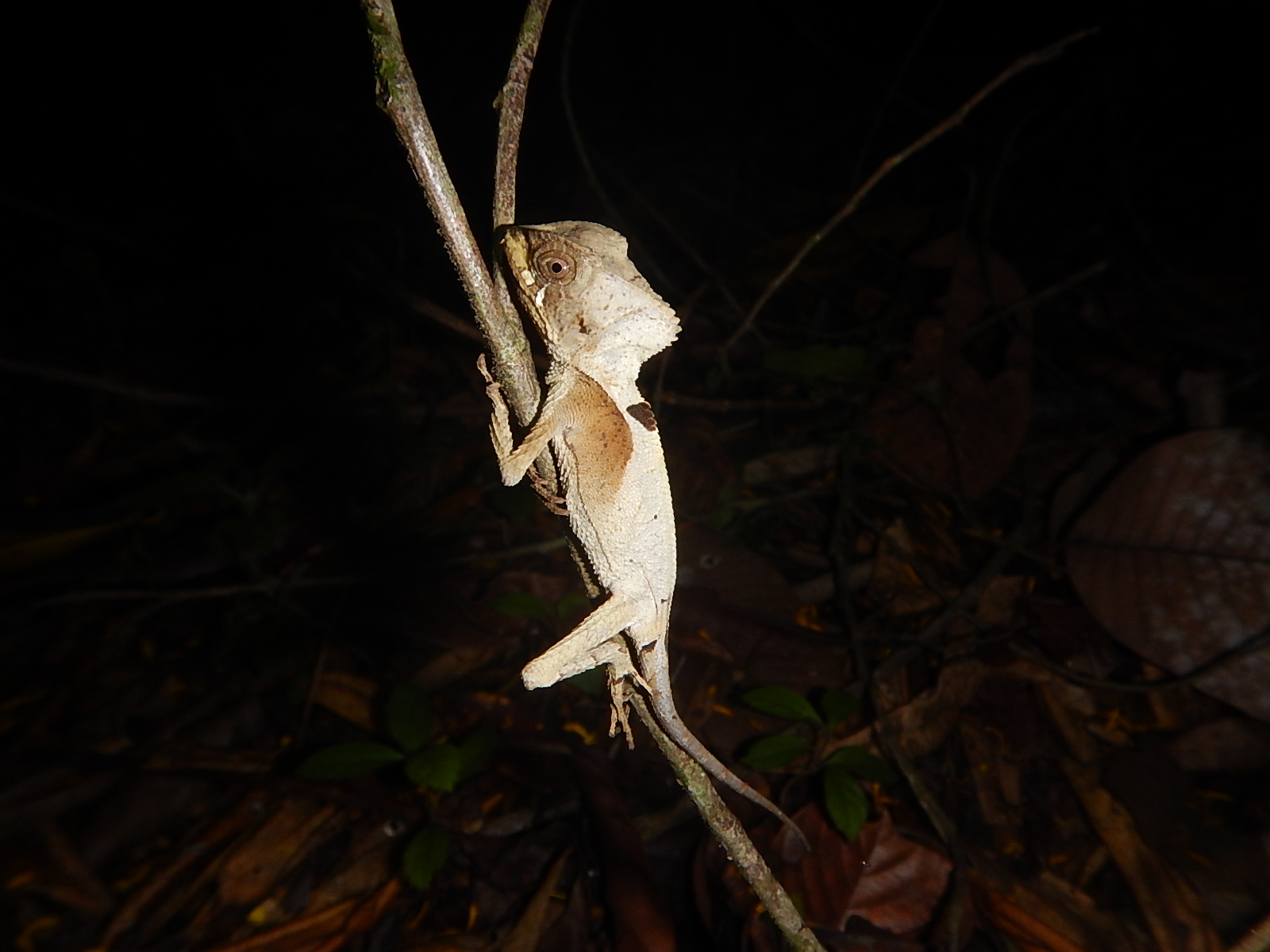 Species of Corytophanes are cryptic and normally freeze when a larger animal (human or potential predator) is nearby. When they move, the do so very slowly. They prefer low light understory in tropical forests. Corytophanes hernandezii mostly lives and hunts in forest leaf litter, and its color, pattern, and behaviors are very effective in their chosen habitat.